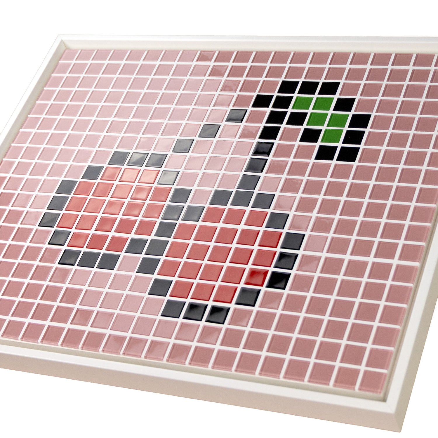 Glasmosaik Cherry Wall Art eingefasst in einen weißen Schattenfugenrahmen.